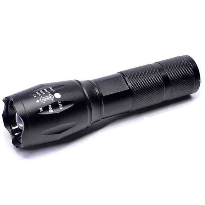 Ручний тактичний/туристичний ліхтар, виготовлений із металу та пластику.