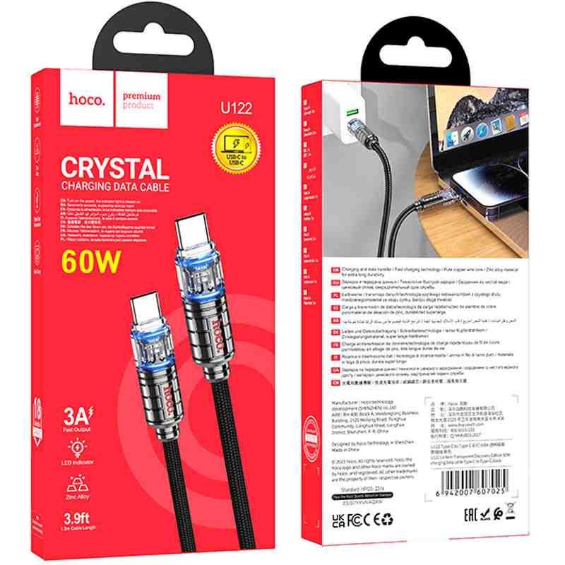 Дата кабель Hoco U122 Lantern Transparent Discovery Edition Type-C to Type-C 60W (1.2m)