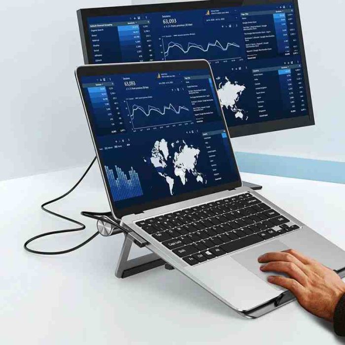 Підставка для ноутбука ідеально підходить для тих, хто цінує комфорт та функціональність у використанні свого ноутбука, забезпечуючи одночасно зручність та розширені можливості підключення пристроїв.