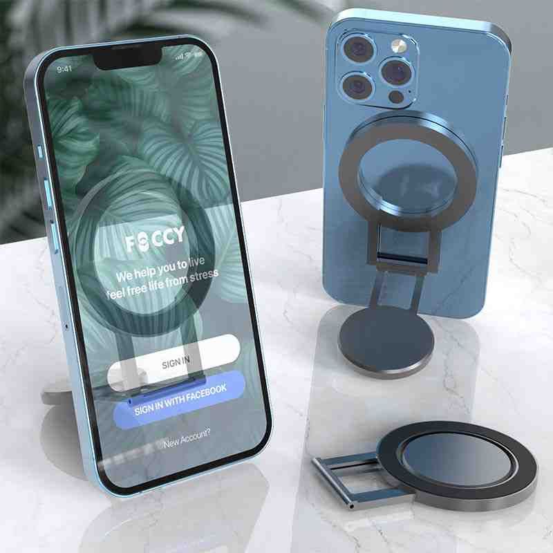 Це кільце легко прикріплюється до задньої частини телефону або чохла, забезпечуючи можливість магнітного з'єднання з підставкою MagSafe.