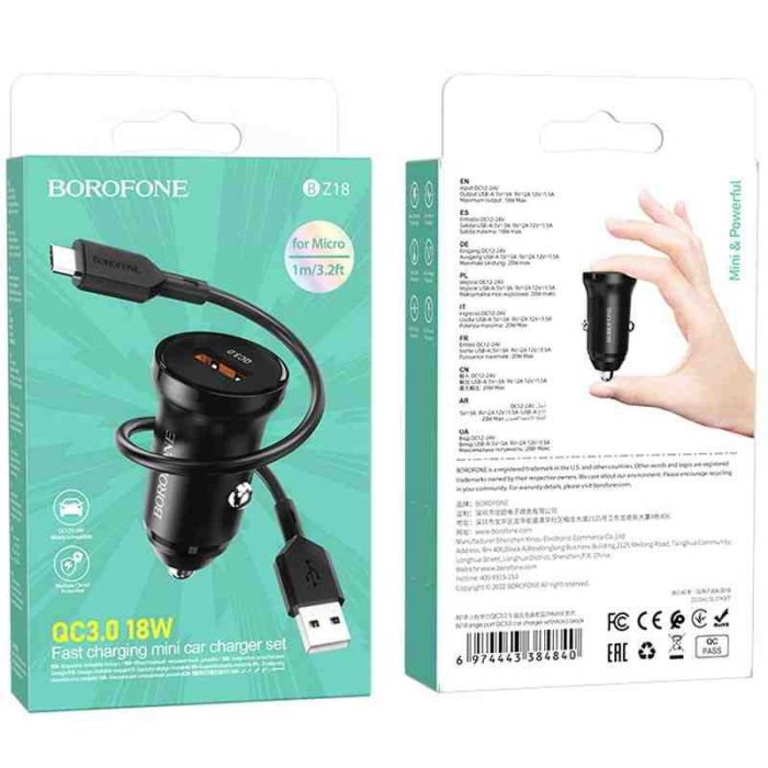 АЗП Borofone BZ18 QC3.0 (1USB-A) + кабель USB to MicroUSB