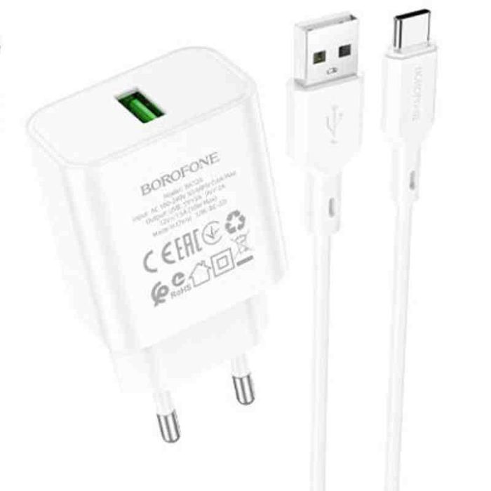 МЗП Borofone BA72A Spring QC3.0 (1USB-A) + кабель USB to Type-C